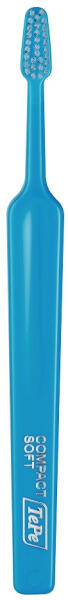 Népszerű fogkefe kicsi, háromszög alakú fejjel, lapos nyéllel és puha, egyenes metszésű sörtékkel, egyszerű, egyszínű kivitelben. TePe Compact soft, fogkefe