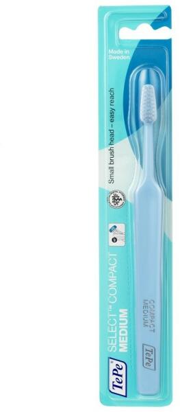 A TePe Select Compact fogkefe a méltán népszerűTePe Select fogkefetovábbfejlesztett változata. Feje kisebb, ezért kiváló választás gyermekek és azok a felnőttek számára is, akik öklendezési reflexük miatt a kisebb fogkeféket preferálják. A fogkefe használata minőségi anyagainak ésfelhasználóbarát nyélkialakításánakköszönhetően egyszerű és kényelmes. Az elvékonyodó fej és aforró víz hatására meghajlítható nyakgarantálja, hogy mindenki a saját anatómiai jellemzőihez igazíthatja fogmosási rutinját. Lekerekített sörtevégeinekköszönhetően gyengéd a fogínyhez, ám alapos tisztítást tesz lehetővé. Tulajdonságok: - Medium (közepesen kemény) sörte: alapos plakk eltávolítást garantál - Kisebb, elvékonyodó fej - Elegendő a kefét forró vízben felmelegíteni és ezt követően a nyakát a kívánt helyzetbe hajlítani A színválasztásra vonatkozó kérések teljesítését nem tudjuk garantálni. Megértését köszönjük!