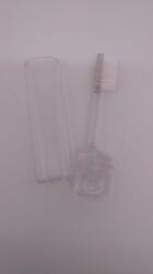 Kétrészes, kisméretű, így bárhol elfér. Segítségével bármikor fogat lehet mosni. Átlátszó